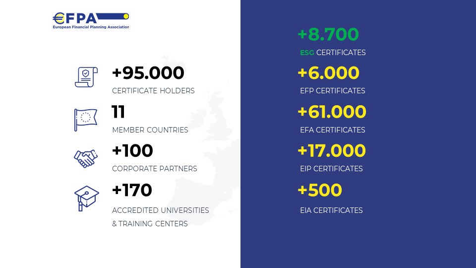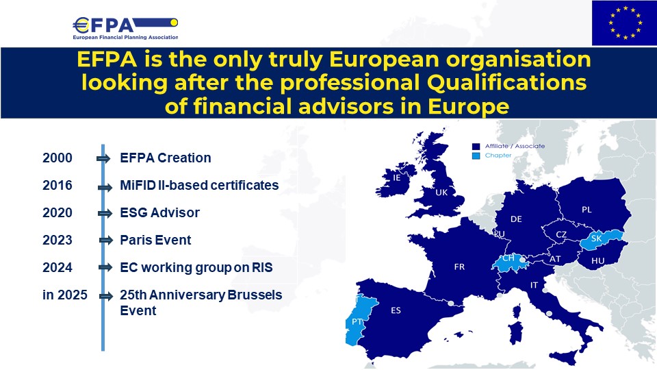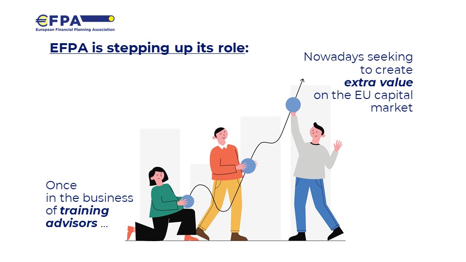 Pomimo wyzwań, mocno wierzę, że nadszedł czas na działania w Europie. EFPA Europa jest gotowa się w nie włączyć. Po 25 latach działalności, zbudowaliśmy społeczność ponad 95 000 aktywnych posiadaczy certyfikatów EFPA, którzy stawiają interes Klienta na pierwszym miejscu, w praktyce stosują zasady etyczne i stale dbają o swój rozwój zawodowy . EFPA jest zdeterminowana do zintensyfikowania dialogu z ważnymi instytucjami europejskimi na temat kluczowej roli doradców finansowych w kształtowaniu rynku inwestycji detalicznych, aktywnego włączania inwestorów indywidualnych w inwestowanie i rzetelnego chronienia ich bezpieczeństwa finansowego. Jako zaufani strażnicy bram do usług finansowych, doradcy finansowi pomagają klientom zrozumieć ofertę rynku finansowego i podejmować świadome decyzje, dopasowane do ich indywidualnej sytuacji i profilu. Niezmiennie opowiadamy się za szerokim dostępem do wysokiej jakości doradztwa finansowego dla każdego obywatela UE.