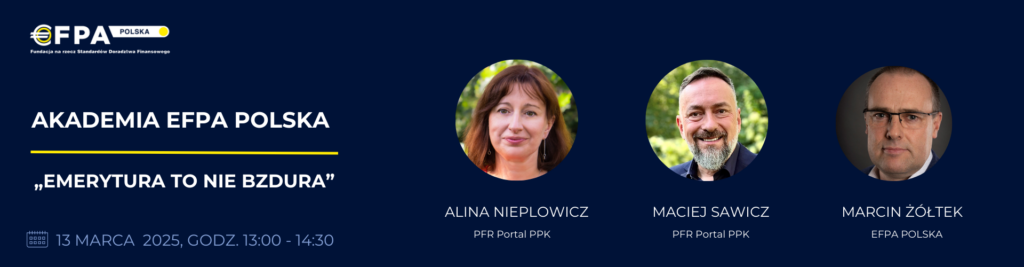 Najbliższe spotkanie w ramach Akademii EFPA to przewodnik dla wszystkich, którzy chcą krytycznie spojrzeć na swoje zabezpieczenie emerytalne. Nasi eksperci z PFR Portal PPK: Alina Nieplowicz i Maciej Sawicz opowiedzą Wam, jak zadbać o przyszłość Waszą i Waszych klientów.