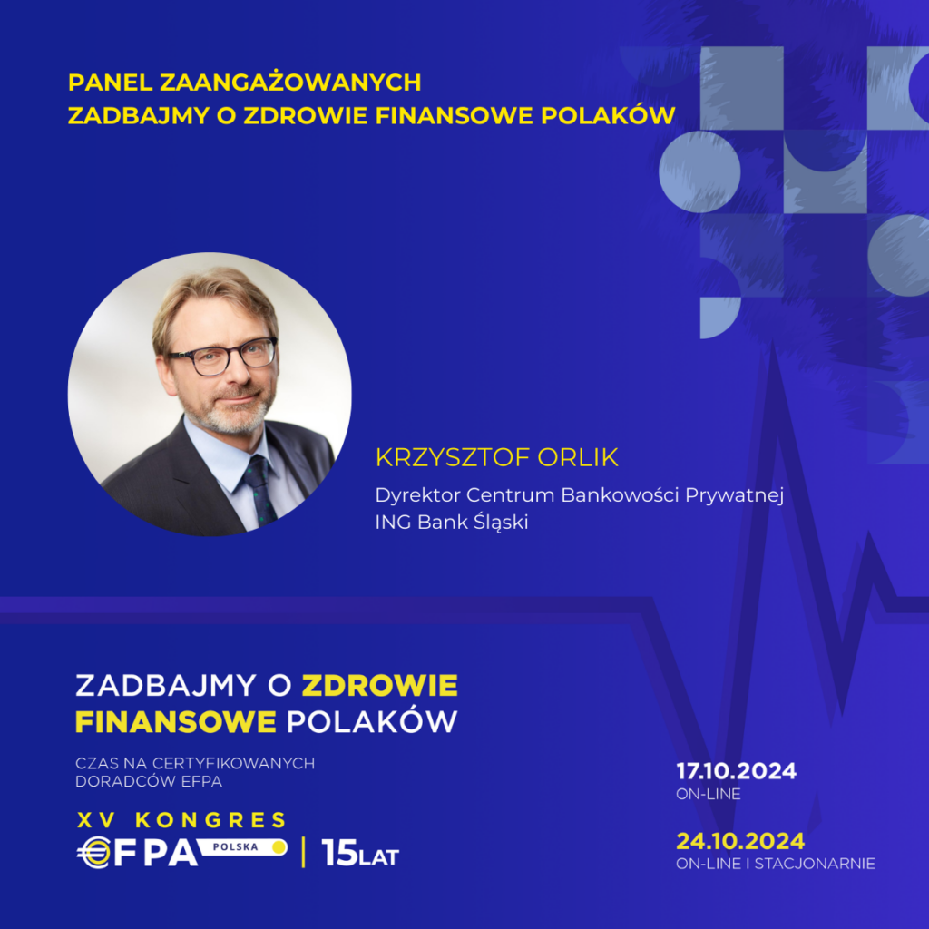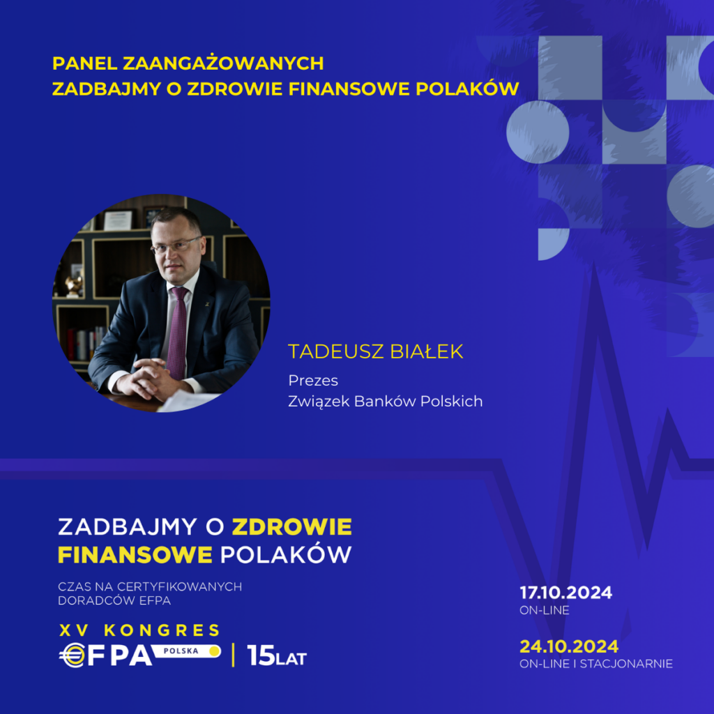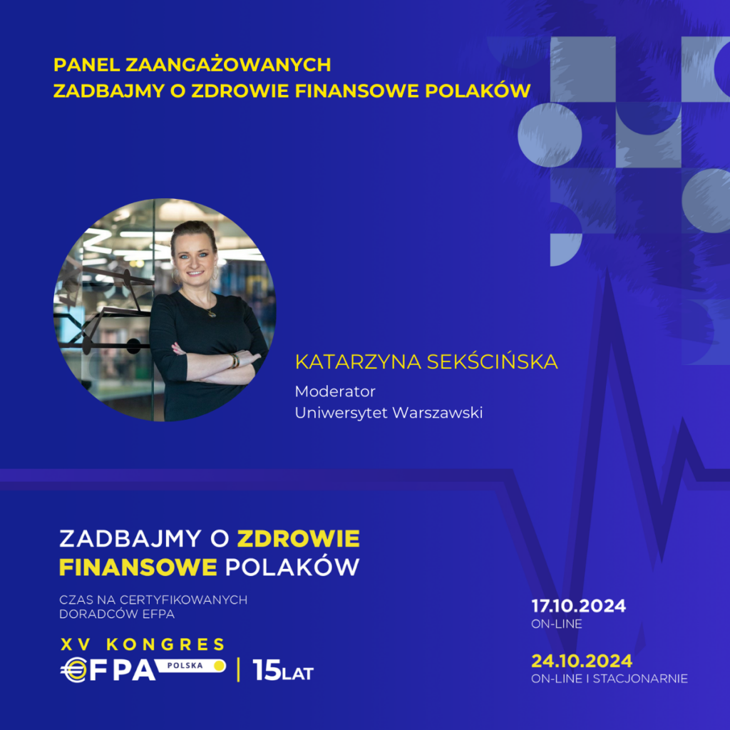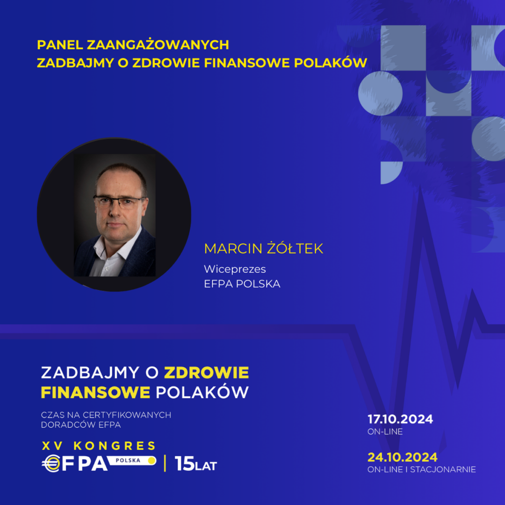 To zapraszamy na XV Kongres EFPA Polska, 24 października ONLINE na PANEL ZAANGAŻOWANYCH: ZADBAJMY O ZDROWIE FINANSOWE POLAKÓW.