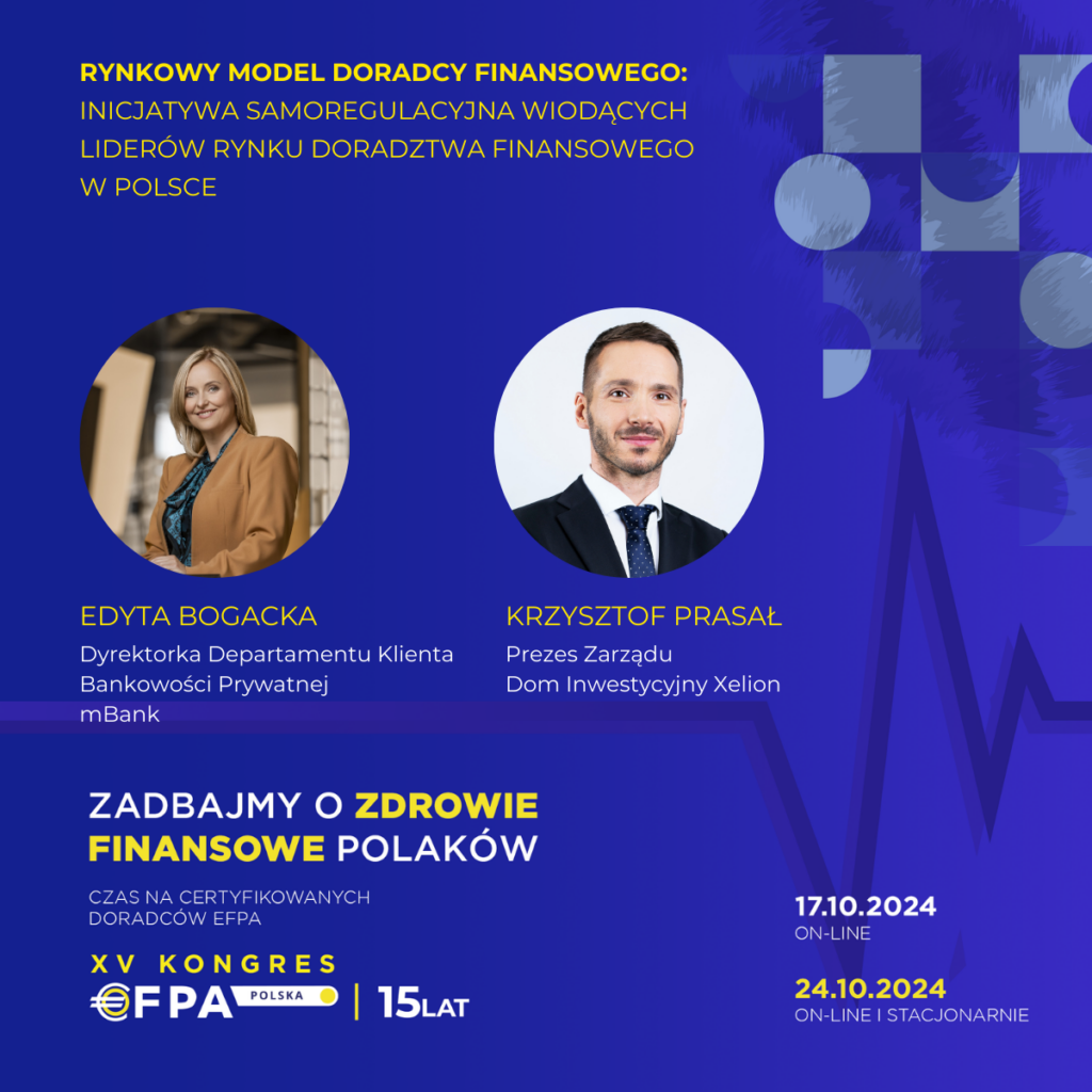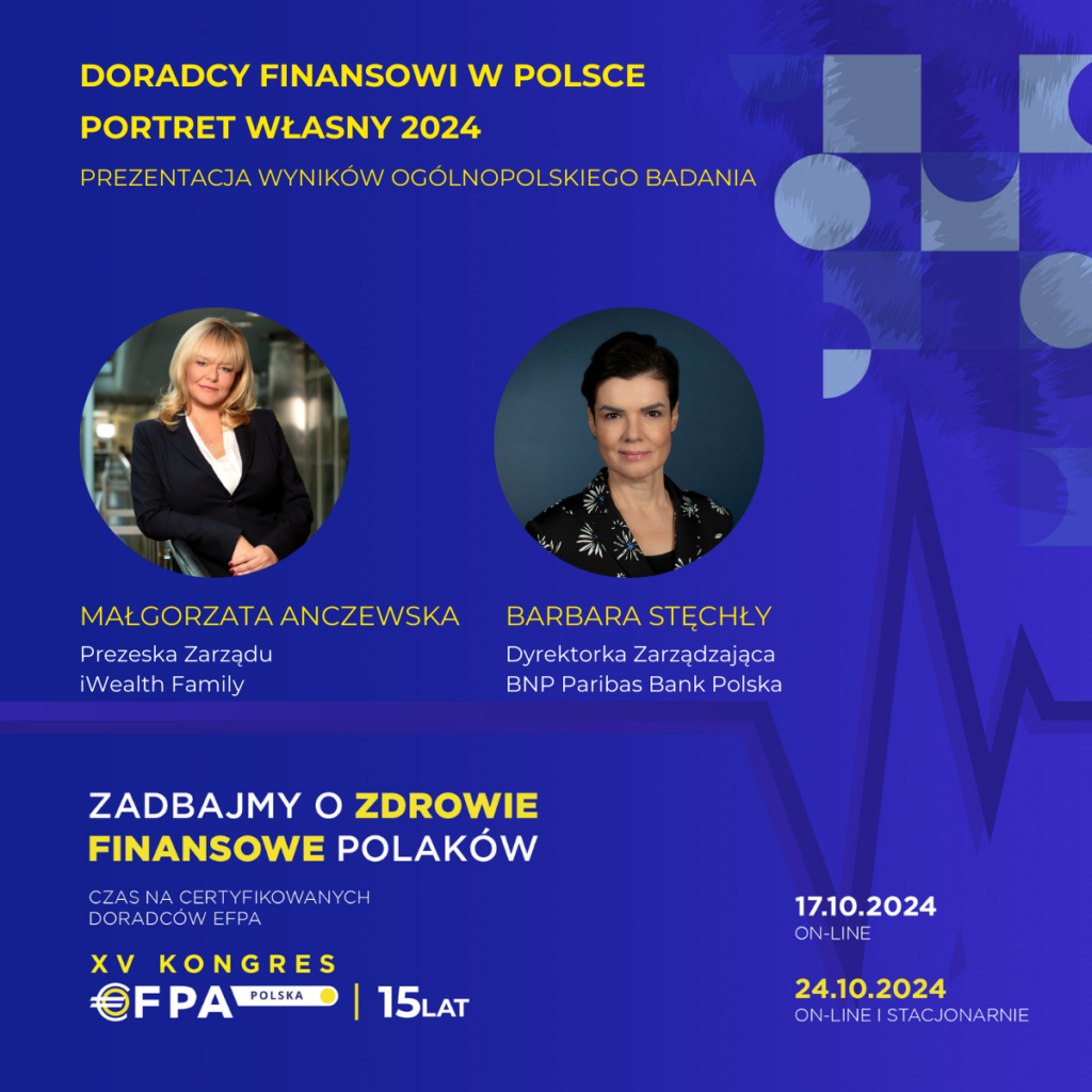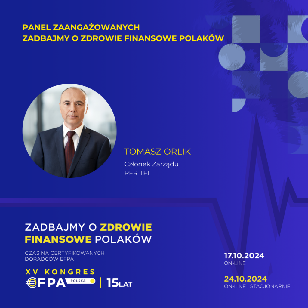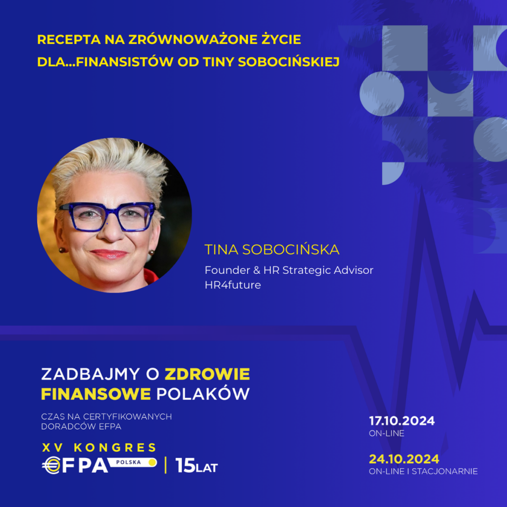 To zapraszamy na XV Kongres EFPA Polska, 24 października ONLINE na PANEL ZAANGAŻOWANYCH: ZADBAJMY O ZDROWIE FINANSOWE POLAKÓW.