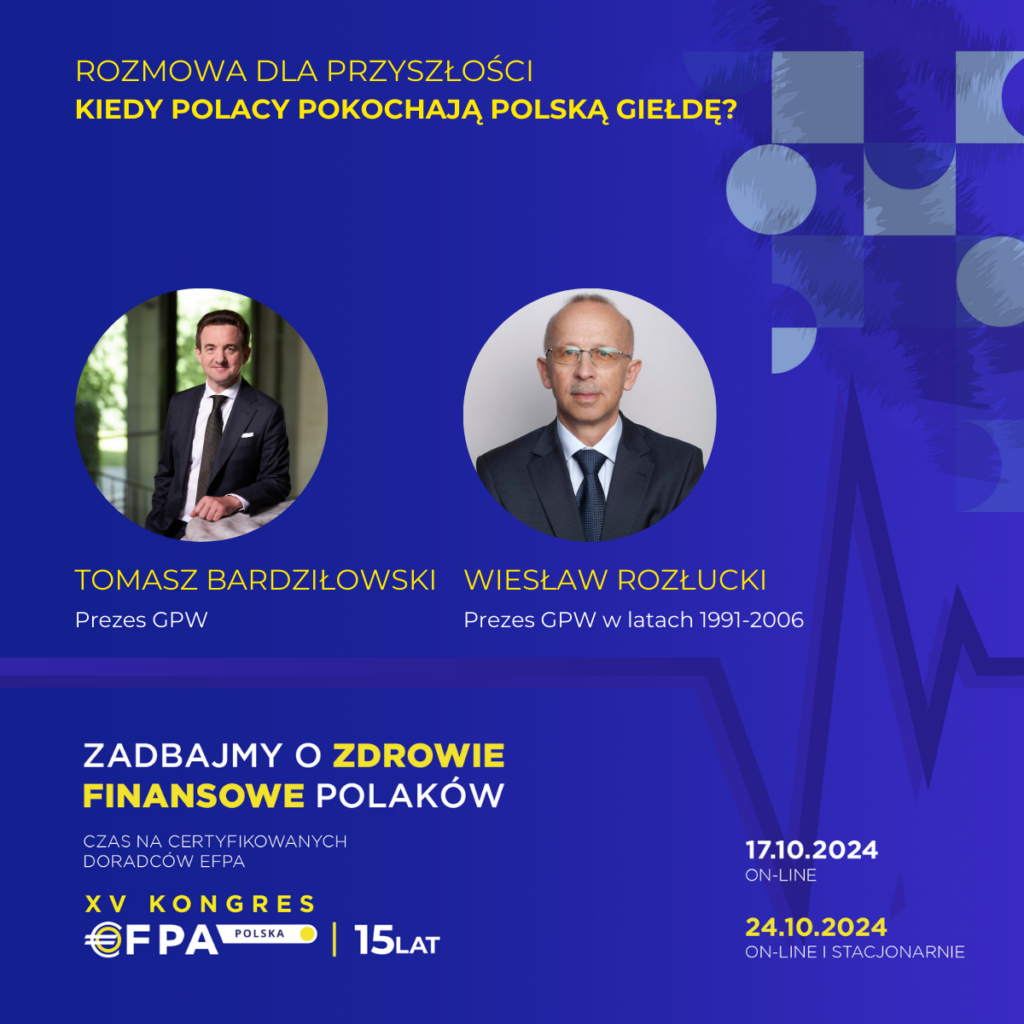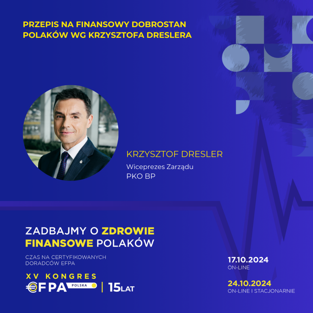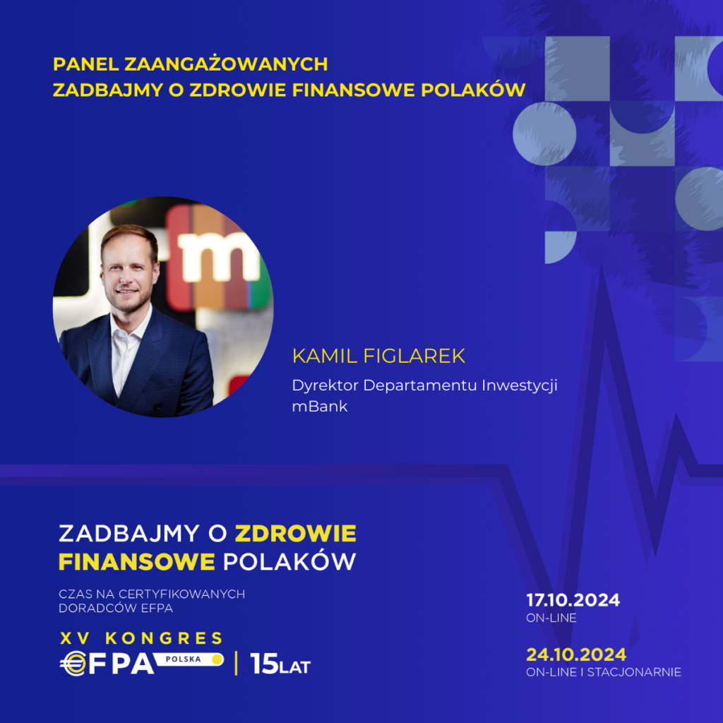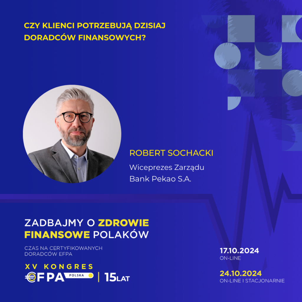 To zapraszamy na XV Kongres EFPA Polska, 24 października ONLINE na PANEL ZAANGAŻOWANYCH: ZADBAJMY O ZDROWIE FINANSOWE POLAKÓW.