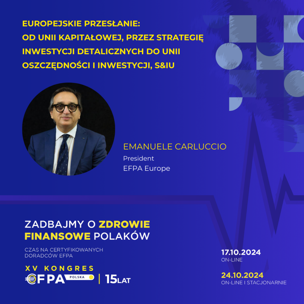 - EUROPEJSKIE PRZESŁANIE: Od Unii Kapitałowej, przez Strategię Inwestycji Detalicznych do Unii Oszczędności i Inwestycji, S&IU: co EFPA Europe przynosi do okrągłego stołu? Emanuele Carluccio President EFPA Europe